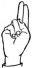 На ћирилици написано МИОДРАГ ДРАГОМИРОВИЋ састоји се из 19 слова [?]. Исписано ћириличном једноручном азбуком за глувонеме: